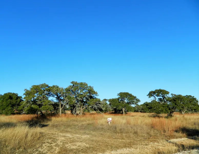 Amazing hilltop views with homesite pad and electricity in place, ready for you to build your Hill Country dream home! 25+ acres with three sides fenced, partial caliche road and located in the exclusive gated fly-in community, The Landing. Located approximately 2 miles North of the City of Blanco. Amenities include a 3,400 foot private runway, horse barn with 8 stalls, paddocks and arena, a 53+ acre common area including beautiful rock Main house with kitchen and dining room, guest cabins for overnight stays, swimming pool with rock waterfall and spa, lighted tennis court and stocked fishing pond. This community is a Wildlife Management Property Association which provides a wildlife tax exemption and allows hunting with bows for whitetail deer management. Property Owners Association dues annually. Low taxes due to wildlife tax exemption. A Must See!