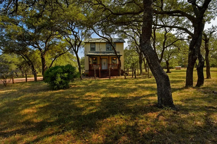 11+ post oak studded acres tucked away just outside Hye / Stonewall and the booming Hill Country Wine Trail. The +/- 1600 sqft 2 story cottage is privately situated in the center of the property enveloped by a canopy of mature hardwoods and filled with natural light for an enchanting tree house effect. The home offers an inviting family room and country style kitchen with comfortable living quarters: 2 junior suites, one downstairs the other located up and a third guest room featuring an oversized closet.