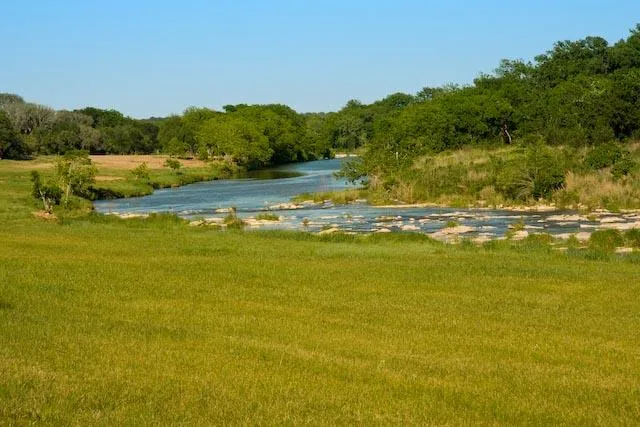 WATER: The ranch fronts on the wide, hard-flowing Pedernales River for over a mile, including a long, deep hole near the residence boasting some of the best fishing and boating in the area. This water is constant, clear and spring-fed, and varies from wide, noisy falls to pocked limestone slabs punctuated by “bathtubs” and floatable pools. Most of the river frontage is easily accessible on foot, and a shady pecan bottom near the main house provides relaxing riverside shelter.