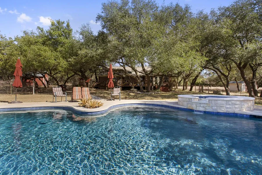 24 Ag Exempt Acres, Home, Pool, Located minutes from Johnson City TX. The house is a 3 bedroom 2 bath(1958 square ft) brick home. The kitchen and both bathrooms have been recently updated. Another notable new improvement is an in-ground swimming pool with hot tub attached. The cedar has been removed and there are a ton of mature live oaks on the property. There are several out-buildings on the property that provide great equipment sheds or storage. 45 minutes to Austin and about an hour from San Antonio.