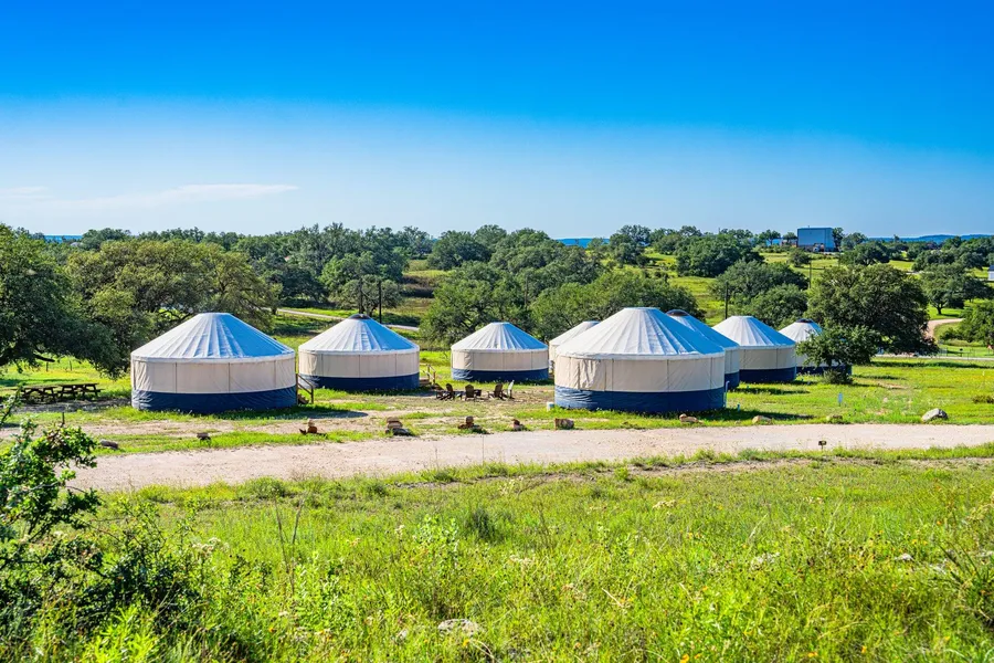 Discover an exceptional investment opportunity on 10 sprawling acres conveniently located near the 290 Wine Corridor. This property features eight charming yurts, each currently has a solid rental booking history which is indicative of the highly sought-after nature of this type of short term rental. Each private yurt is thoughtfully designed with 2 queen beds, a full bathroom, and a fully stocked kitchenette featuring an induction cooktop, toaster oven, and mini fridge. Guests can be submerged into this fun experience, take in the surrounding views of the Texas Hill Country, soak in a cedar barrel hot tub, or gather around the fire pit and sit under the stars. Located just minutes from the 290 wine trail, this property has easy access to numerous wineries and restaurants.