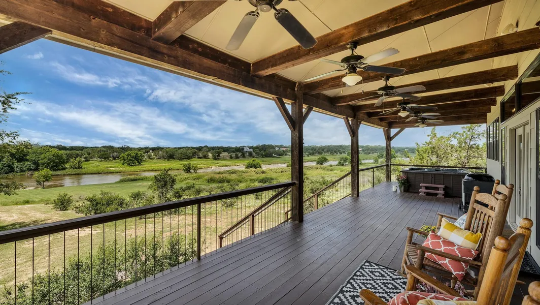 Everyone wants their own private Texas Hill Country Getaway...this is it! Charming home on 5 acres with 225 feet of Pedernales River frontage! Rare opportunity to own a waterfront home on the river where you can enjoy swimming, wading, tubing and fishing. Nearly 2000 sq ft with 4 bedrooms and 3.5 baths. Open concept floorplan allows living, dining and kitchen areas to all flow together seamlessly with plenty of windows for natural light. The spacious Owner's suite features a claw-foot soaking tub and dual vanities. The split floor plan offers a separate guest suite downstairs and two bedrooms with a full bath upstairs. You will fall in love with the Texas-sized covered patio! Enjoy sipping a cup of coffee from your rocking chair or a nice glass of wine while relaxing in the hot tub! Plenty of wildlife to watch as you take in the peace and tranquility of nature. Property is a great mix of wooded area in the front for added privacy and easy walk out access to the Pedernales River from the back. Summer is a popular time to visit nearby Fredericksburg for delicious peaches and picture-perfect patio weather at area wineries. Spend some time at one of the area attractions like Pedernales Falls State Park, Lake LBJ, Lake Travis, Highland Lakes or Canyon Lake. Short distance from Austin and San Antonio. Furniture, john boat, kayaks and riding John Deere lawnmower convey.