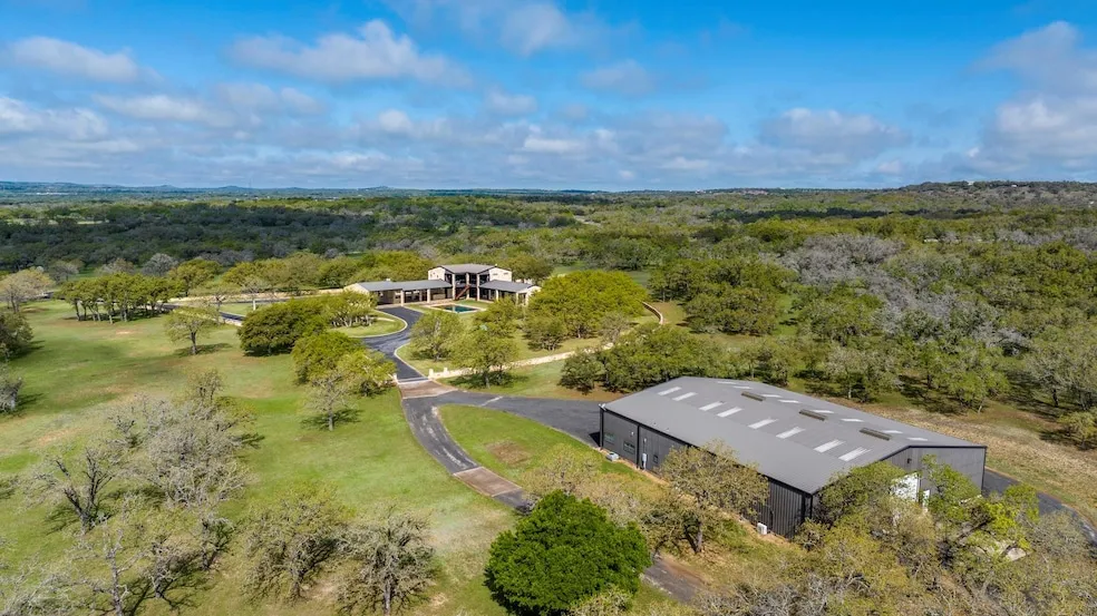 This 400-acre Hill Country ranch is located in highly desired Blanco County in the Cypress Mill area. Only 40 miles and less than an hour from Downtown Austin. Marble Falls, Johnson City and Horseshoe Bay are 15 minutes away. This stunning Texas ranch is one of the most desirable areas of the Hill Country.This turn-key, unrestricted property is wildlife exempt, perfect for hunting, recreation, or potential event venue. With approximately 4,100 feet of frontage along RR 962 E and only 3 miles east of Hwy 281, the ranch offers excellent access and privacy. Upon entering, you will feel like you are entering a park, with a paved road winding through maintained grounds and hundreds of majestic live oaks. The ranch features dense wooded areas as well offering great habitat for wildlife. The rolling hills provide incredible breathtaking views. Partially high fenced on two sides, the ranch boasts two large lined ponds that remain full year-round.The main residence spans 4,800 square feet and features six bedrooms, eight bathrooms. With hardwood floors, top-of-the-line appliances, and high-end finishes throughout, this home is perfect for entertaining family and friends. The luxury outdoor entertaining area includes a heated pool with a built-in cover, an outdoor kitchen, along with an outdoor fireplace.In addition to the main residence, there is a well-appointed insulated barn approximately 5,500 sqft. The barn has three separate air-conditioned spaces including a full office with bathroom and an apartment, perfect for a ranch hand or full-time foreman.The ranch is equipped with off-grid capabilities with 70% of the house running off solar energy. Also boasts 90,000 gallons of rainwater collection, the ranch features three wells that produce 20-30+ gallons per minute.