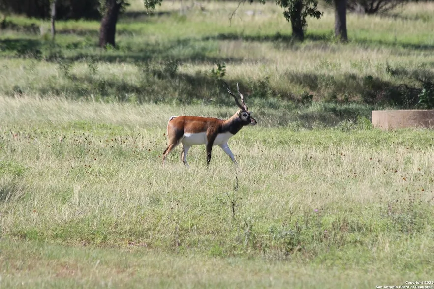 Welcome to a slice of Hill Country heaven. Tucked away at the end of a peaceful cul-de-sac in the prestigious, gated enclave of Majestic Hills Ranch, this breathtaking 5-acre homesite offers an extraordinary opportunity to build the lifestyle you've always imagined-quiet, expansive, and surrounded by nature's finest. From the moment you arrive, the views will take your breath away-panoramic vistas stretch across rolling ranchland and a serene pond, where golden sunsets paint the sky each evening. This is Texas living at its most peaceful and picturesque. The gently sloping terrain offers a perfect canvas for your custom vision-whether that includes a luxury estate, cozy guest casita, elegant barn, or all three. Here, the land itself feels alive. You can apply for a wildlife exemption, with majestic blackbuck antelope, graceful oryx, white-tailed deer, and wild turkey wandering freely, creating a daily connection to the wild beauty of the Hill Country. Life in Majestic Hills Ranch is about more than just land-it's a lifestyle. Residents enjoy exclusive access to community features like a crystal-clear spring-fed swimming hole, a private sport court, scenic park spaces, and the charming Homestead House, ideal for guest stays or unforgettable gatherings. With private, ATV-friendly roads and placement in a certified Dark Sky Zone, your evenings are filled not with city lights, but with starlit skies that stretch for miles. Ideally located just minutes from the vibrant heart of Blanco, with boutique wineries, restaurants, and outdoor adventures close at hand, this property also offers convenient access to both Austin and San Antonio-making weekend getaways or full-time Hill Country living easier than ever. Whether you're dreaming of a weekend retreat, a legacy property, or your forever home, this one-of-a-kind homesite delivers peace, privacy, and the soul-soothing beauty that defines the Texas Hill Country.