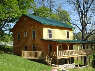 Beautiful log home buitl by the amish. All wood, inside and out. Custom made cabinets, doors, etc. everything brand new. 2 acres with creek. Fenced in pasture with plenty of room for horses and a barn. Wrap around porch for cookouts and entertainment by nature. Nice flowing creek on corner of property. Wonderful mountain views. Surrounded by large farms and National Forest close by.
