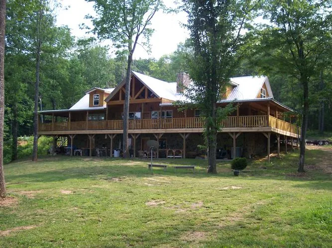 THIS MOUNTAIN CHALET IS A TRUE GEM WITH 6 BEDROOMS WITH EACH BEDROOM HAVING ITS OWN BATHROOM, OVER 6000 SQ. FT. OF LIVING AREA, AND 12 ACRES TO ENJOY. THIS HOME INCLUDES HICKORY FLOORS AND WALLS,TILE FLOORS, BUILT IN FEATURES, EXPOSED BEAM TRUSSES, AND VERY SPACIOUS LIVING. COME ENJOY THE COZY LIVING BESIDE TWO BEAUTIFUL ROCK FIREPLACES AND SOAK UP THE SURROUNDINGS ON YOUR COVERED 10' WIDE PORCH THAT IS 100' LONG ON BOTH SIDES OF THE HOUSE. WANT EFFICIENT HEATING? THIS HOME OFFERS AN OUTDOOR WOOD BURNING STOVE THAT ALSO HEATS YOUR WATER. IF YOU HAVE A LARGE FAMILY, LIKE TO ENTERTAIN, OR LOOKING FOR A CORPORATE GET-A-WAY THIS HOME HAS THE LIVING SPACE AND MORE. ALOT OF DETAIL TAKEN IN BUILDING THIS HOME AND POSITIONED TO TAKE ADVANTAGE OF THE VERY NICE VIEWS FROM YOUR LARGE COVERED PORCH. ALL OF THIS WITH SPACE TO ROAM OR HUNT IN 12 ACRES OF MATURE HARDWOOD. COME TAKE A LOOK FOR YOURSELF!!