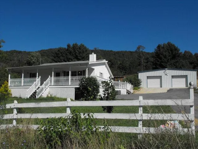 A BEAUTIFUL HOME WITH SECLUSION. THIS 1912 HOME HAS BEEN REMODELED AND ADDITIONS HAVE BEEN ADDED. HOME FEATURES INCLUDE A VERY NICE BASEMENT, 2 BEDROOMS, 2 BATHS, ALONG WITH UPSTAIRS STORAGE, LAMINATE WOOD FLOORING, AND A JET TUB. IT HAS A BEAUTIFUL WRAP AROUND PORCH WITH OUTSIDE SPEAKERS AS WELL AS A VERY LARGE 2 CAR HEATED GARAGE WITH PLENTY OF ROOM FOR A WORK SHOP. THERE IS A FENCED IN GARDEN AREA AND FRUIT TREES. SPRING RUNS THROUGH THE PROPERTY WITH ROOM TO BUILD A POND IF DESIRED. TRAILS RUN UP THE MOUNTAIN WITH A CAVE THAT YOU CAN WALK INTO, HUNTERS HAVE USED IT TO CAMP IN. VERY SECLUDED BUT JUST MINUTES FROM I-77. SELLER MAY BE WILLING TO NEGOTIATE A 3550 WATT 6.75 HP GENERATOR, 2 WALL MOUNTED FLAT SCREEN TV'S, A FREEZER, AND AN AIR COMPRESSOR IN THE GARAGE.