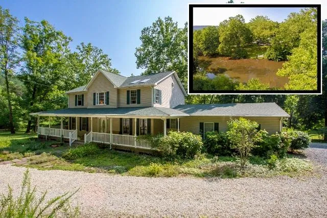 Gorgeous and well maintained home located in Bland County, VA with over 2000' of the bold Big Walker Creek flowing through the middle of the property. Use as a permanent residence or even a vacation getaway. Enjoy the view of the creek from the covered wrap around porch, from the open deck, or even from the jet tub in the bathroom. There is an attached two car garage with a large storage area. Interior features include hardwood floors, tile floors, walk-in closet, several appliances including a freezer, a brick wood burning fireplace, insulated tilt windows and more. Other features include vinyl siding, skylights in the master bedroom, 2 heat pumps, a potential fourth bedroom if desired, and even a separate 1 car garage w/extra storage. Own both sides of the creek for $499,900 which is +/-49 acres total.