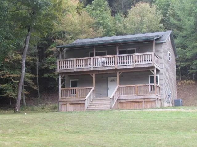 Newer contemporary cabin joining Little Creek and Jefferson National Forest. This home has 3 bedrooms and 2.5 baths. The master has a jacuzzi tub and separate tiled shower and the living room, kitchen, which has an abundance of hickory cabinets and dining is all open and has 2 sets of double doors leading out to the 2nd story balcony. This home is setting in the privacy of the mountains with upper and lower decks and with a nice creek flowing through along with a small branch. Outside you also have a 1 car detached garage and a RV hookup for guests with 30 and 50 amp electric