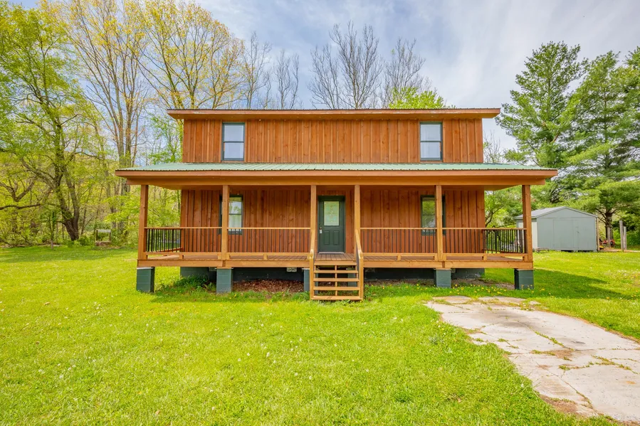 3 BR 3 BA home on +/-1.4 acres in Bastian, VA. Newer laminate wood flooring, hickory cabinets in the kitchen, huge laundry room, jet tub, wood and vinyl siding, tin roof, huge flat yard ideal for the kids to play, very nice large covered front porch, and several outbuildings for storage. Heat pump for heating and cooling and has it's own well and septic. There are even two large storage areas in the upstairs that are unfinished, but usable as is. Located just past the golf course and nearby Jefferson National Forest. Home was originally a single wide that has been built onto, however the frame from the singlewide has been removed per the seller.