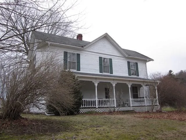 Porch was repaired recently, but is still 90% original. New water pump has just been installed. Plumbing has been updated. 2 bedrooms and both bathrooms have been updated. There are two water heaters, one up and one downstairs, and both are fairly new. Upstairs is electric baseboard heating, and downstairs is a wood stove and wood burning fireplace. The root cellar was original to a log home that burned in the 1800s, and the current home was built over top if it. There is an older oil furnace under that house that has not been used in years but may still be usable with some updating. Two 500 gallon oil tanks are also present under house. Purchaser to verify internet availability.