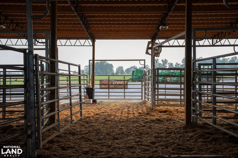 Not often does the opportunity come about to own one of the finest cattle farms in the state of Alabama. Not only are the facilities first class, but the 507 +/- acres of pasture ground have a proven record of growing some of the best cattle in the country. With 5 +/- miles of exterior fencing and 5 +/- miles of interior cross fencing, this property offers endless opportunities for raising livestock. With a fully equipped sale facility that has cedar paneling throughout, a custom-built auction block, a full bar, and a full kitchen with dining space that will hold up to 55 people seated, there was no expense spared in the work that has been done on this building. On the property, there are three other barns that offer great space for storing equipment and holding livestock. Around the sale barn, there are over 63 pens all connected together. Located on the hillside from the sale barn, the...