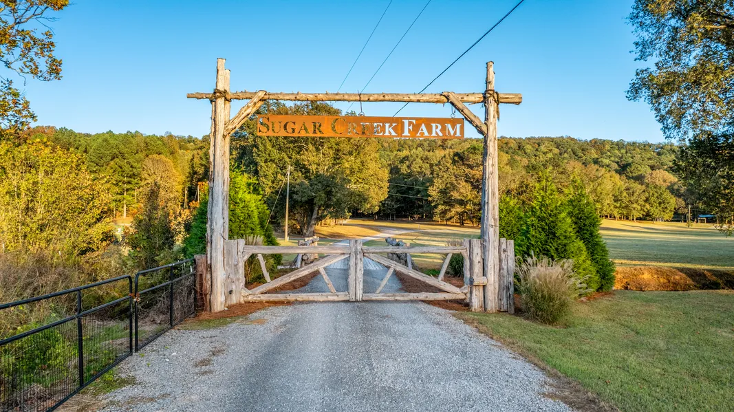 Welcome to 575 Guinns Cove Lane, nestled in the serene valley of Guinns Cove, just 35 miles north of Birmingham. Sugar Creek Farm spans approx. 440 acres of pristine countryside with wooded ridges, lush open fields, and abundant wildlife. Private 7-acre lake with boathouse and pier. Immaculately designed lodge featuring 4 bedrooms, 3.5 baths, and expansive screened porches with lake views. Exceptional improvements include a 4,900± SF main barn with loft, 2,400± SF equipment shed, 5,600± SF climate-controlled storage building, plus a historic barn. Scenic Sugar Creek, a natural spring, seasonal waterfall, food plots, and gated entry enhance the property’s rare beauty. Whether envisioned as a recreational retreat or working farm, Sugar Creek Farm is a legacy opportunity and truly one-of-a-kind. Contact brokers for details or to schedule a private tour.