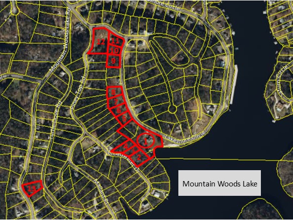 Property Location - Mountain Woods Lake is near Hayden, AL. The main property is located at 741 Lake Shore Cir, Warrior Alabama. This address has an Excecutive Residence on the lake with 3 Adjacent parcels. There are 12 Additional Parcels in the area that give access to the lake.