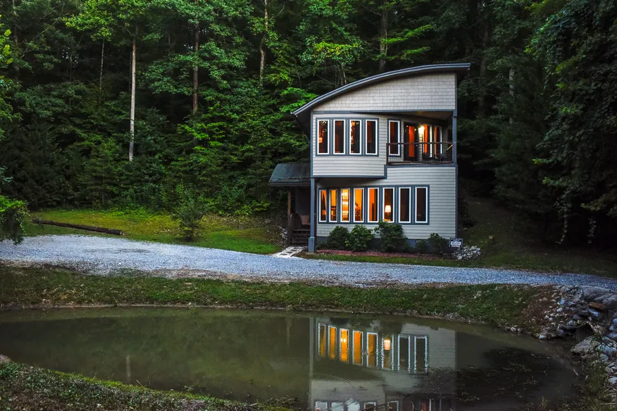 Whether youre looking for a full time residence or a weekend escape, this is the place for you. With almost 7 acres of land that accompany this unique home, privacy and solitude await. The home has plenty of windows so you get a lot of natural light. There is a screened in porch outside the master bedroom suite where you can listen to nature all around. Or you can sit on your private balcony overlooking the pond at the front of the house. You can hear the sound of the running creek from all sides of the house. If rest and reprieve is what you long for, youll find it here. The Butterfly Gap Retreat has few residents, unique architecture (no two houses are the same) a mountain fed lake for fishing and kayaking, and trails for walking and exploring all the beautiful terrain.The home features a brand new hvac system (May 2021), open floor plan, backup baseboard heat, bamboo floors, wood beam...