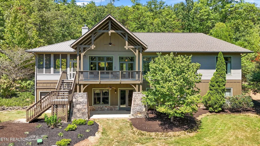 Elegant Mountain Retreat on 7+ Acres in Allegheny Cove Enjoy a gated entrance, professional landscaping, a charming guest cabin, fruit trees, a stocked pond, and private hiking trails leading to breathtaking mountain views leading to this home. Nestled atop Chilhowee Mountain in the exclusive Allegheny Cove community, this custom-built home offers 7.05 acres of serene luxury. Inside, the open floor plan features soaring 10-foot ceilings and beamed accents throughout the great room, dining area, and kitchen. The gourmet kitchen includes granite countertops, cathedral ceilings, double ovens, a walk-in pantry, under-cabinet lighting, and a hidden microwave. French doors lead to a spacious deck and a screened porch perfect for entertaining. The owner's suite is a true retreat with heated bathroom floors, custom cabinetry, a tile shower, soaking tub, and walk-in closet. A cozy study/library offers built-in bookcases and a kitchenette with a full-size fridge. Downstairs, the family/rec room includes surround sound, a wood stove, and access to a covered patio. Additional highlights: Expansive screened outdoor living room with stone fireplace and durable choicedek flooring Custom maple built-ins with up-lighting and a window seat Geothermal 3-zone HVAC system with whole-house humidifier Dual water heaters and whole-home stereo wiring 42x96 mahogany entry door Exterior natural stone, hardi-plank/shingle shake Main level owner's suite Programmable sprinkler system Whole house humidifier Walkout basement Built by McDougall Brothers Construction