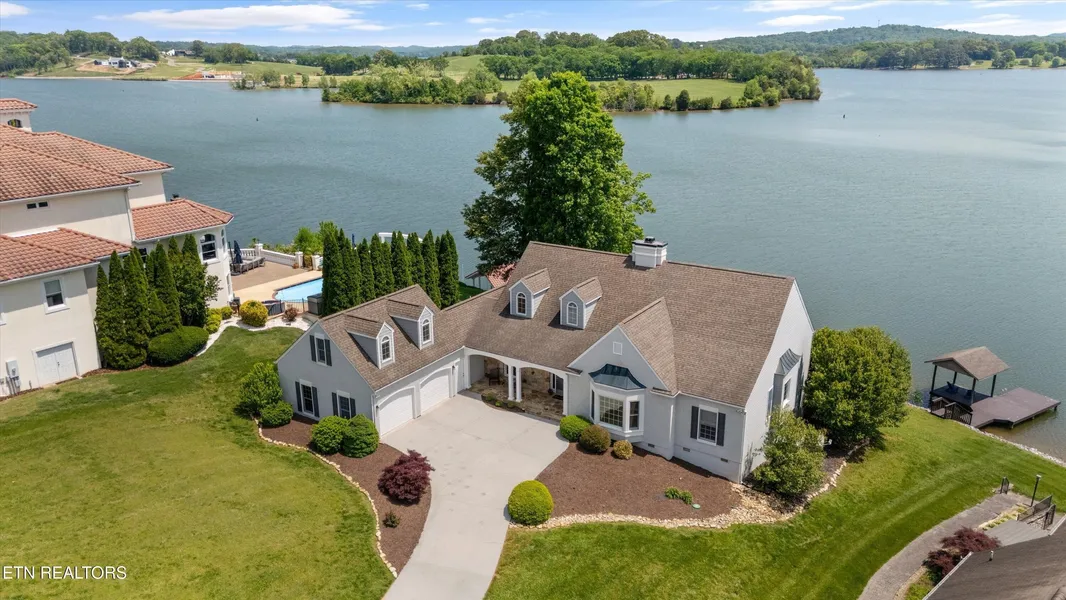 Welcome to your dream lake house, located on the main channel of the Tennessee River/Fort Loudoun Lake. This custom-built home, designed from a Southern Living floor plan, offers breathtaking water and mountain views, thoughtful design, and timeless southern charm. From the moment you arrive, the home's elegant architecture, beautifully landscaped front yard, and inviting presence set the stage for what lies within. Step inside and you're immediately drawn to a stunning wall of windows in the vaulted great room, showcasing panoramic lake views with the Great Smoky Mountains as a majestic backdrop. This ranch-style home was built for easy, elegant living with all primary spaces on the main level - including the great room, kitchen, den/living room, screened-in porch, and spacious primary suite, all overlooking the lake. The great room features soaring ceilings, built-in shelving and a bea...