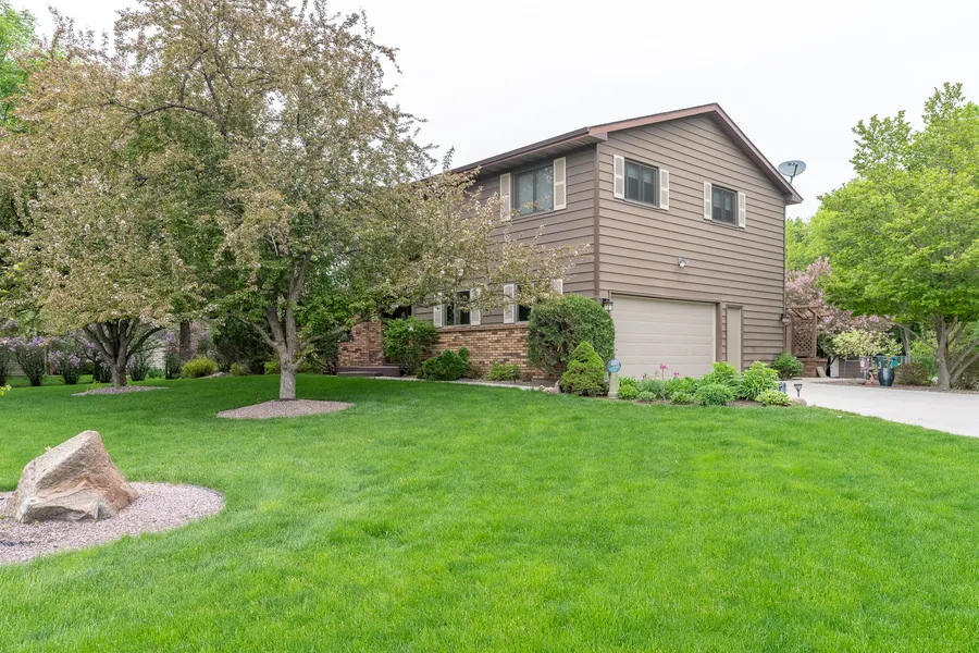 Custom built, modified 2 story with main floor family room. Big, eat-in kitchen with center island, newer tile flooring, new countertops and appliances. Main floor family room finished in knotty pine with gas fireplace and access to patio. Formal dining room with built in china hutch. Living room with corner gas fireplace, finished in brick. Upstairs has 2 large bedrooms, full bath and a big master suite with full bath. Main floor also features a convenient half bath, laundry and back entry way. Basement boasts another L-shaped family room with wood burning fireplace, also finished in brick, an office, storage room and big utility room. All of this on a nearly one acre, well landscaped lot with 14 x 12 shed and a 608 sq. ft. exposed aggregate patio. Newer roof, steel siding and renewal by Andersen windows. New carpeting installed in living room, stairway, master bedroom and new flooring in both upstairs baths and formal dining room. New septic system. Listing agent is a relative to seller.