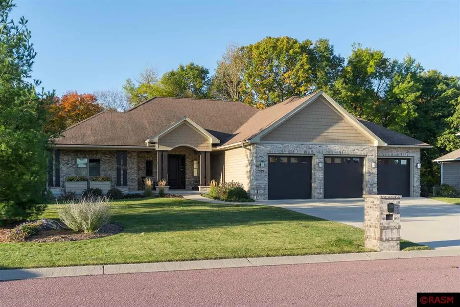 Not a detail was overlooked on this beautifully designed 4 bedroom, 4 bath rambler situated on a stunning ravine lot in a desirable hilltop Mankato neighborhood. The moment you step onto the large front porch and into the foyer of this immaculate home you are greeted by a breathtaking view of the wooded back yard through the extra large windows. The custom gas fireplace beckons you to have a seat and relax while you enjoy watching the birds and other wildlife frolic in the yard. The unique architecture of the main level living area features beautiful columns and coffered ceilings, and the spacious kitchen boasts gorgeous cherry cabinetry, Cambria countertops, a large island with breakfast bar, gas cooktop with range hood, subway tile and stainless steel appliances. The adjacent dining area is situated near large large windows overlooking the back yard and deck. The main level master bedroom has windows overlooking the back yard and the spacious attached master bath features a walk-in shower with glass tile details, a separate jet tub, double vanities and an incredible walk-in closet with sleek, well appointed closet organizing system and luxury cork flooring. Rounding out the main level is an additional bedroom in-suite with full bath as well as a guest 1/2 bath. Moving to the lower level of the home is a great room with a dry bar area, as well as a nice seating area with heated mat under the carpeting for extra cozy comfort. Two more bedrooms, a full bath, utility and storage rooms round out this level of the home. The back yard is expertly landscaped with patio paver areas, a maintenance free Trex deck and piped in gas for your grill. The immaculate heated 3 stall garage has plenty of space for your vehicles and toys. Additional notable features of this incredible home include...touches of tasteful wall paper, spray foam insulation, 4 different areas of in-floor heat, hot/cold water spicket in the garage and many more great details to this home.