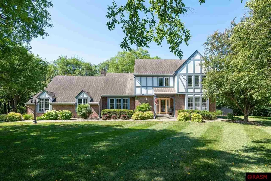 This stately 4 bedroom, 3 bath Tudor style home is situated on a large ravine lot in a quiet cul-de-sac on the South side of Mankato. The main level living space includes an open concept kitchen with hardwood flooring, quartz countertops, two islands with seating, stainless appliances and a nice walk-in pantry. There is room for a kitchen table next to windows overlooking the back yard. The kitchen opens to a cozy living room with a gas burning fireplace. A formal dining area, spacious family room, den with walk-thru bath that could be used as an additional bedroom, a mudroom with storage cubbies and the laundry room finish off this level of the home. The upper level has a spacious full bathroom and three bedrooms including the primary suite with a private bath including a soaker tub, dual sinks and a large tiled shower that offers custom settings. The lower level of the home features an additional bedroom, a rec room with a wet bar perfect for a pool table or theatre area, a room with cupboards and countertop perfect for crafting or a workshop, an additional room that would be great for gaming, and plenty of storage space. You'll absolutely love the back yard that's perfectly set up for entertaining with a large deck and permanent grills and sink, a fenced in ground pool with surrounding patio and beautiful landscaping. The three stall garage has plenty of space for your vehicles and lawn equipment. Schedule your tour today.