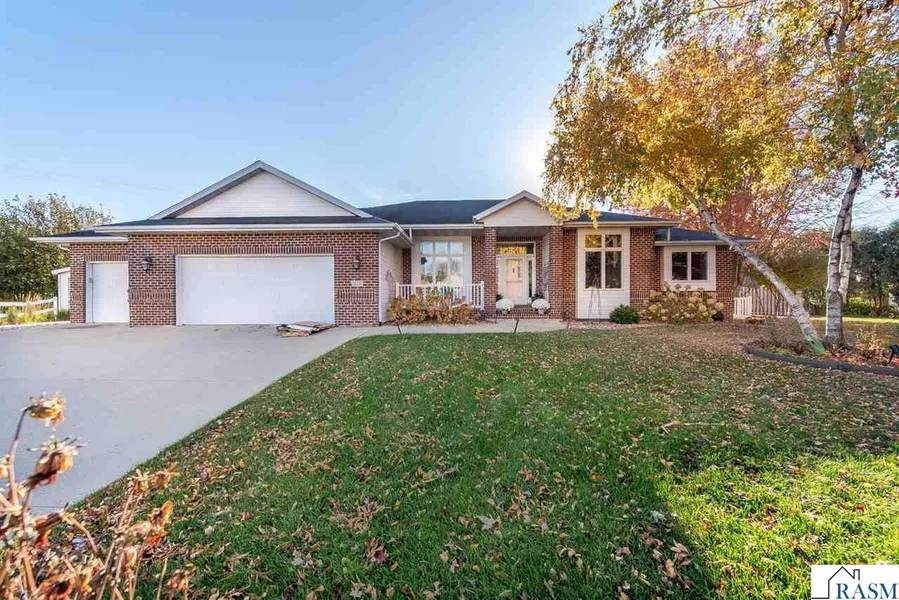 4 bedroom, 3 bath rambler on quiet cul-de-sac. 10' ceilings, maple floors, Andersen windows, elegant living room fireplace and granite kitchen countertops. Main floor office and laundry. Master bath has whirlpool tub. Basement family room has brick fireplace and wet bar. Partially fenced in back yard, sprinkler system and utility shed. Access to basement from heated garage. Garage is huge with 1,125 sq. ft.