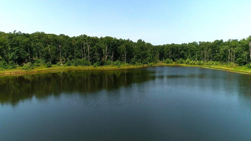 In the middle of the property there is a nice pond, stocked with fish, with a rustic cabin on the north shoreline. Not far from the pond, there is a large, stick frame, metal exterior shed to store equipment or overhead protection for cattle or horses.