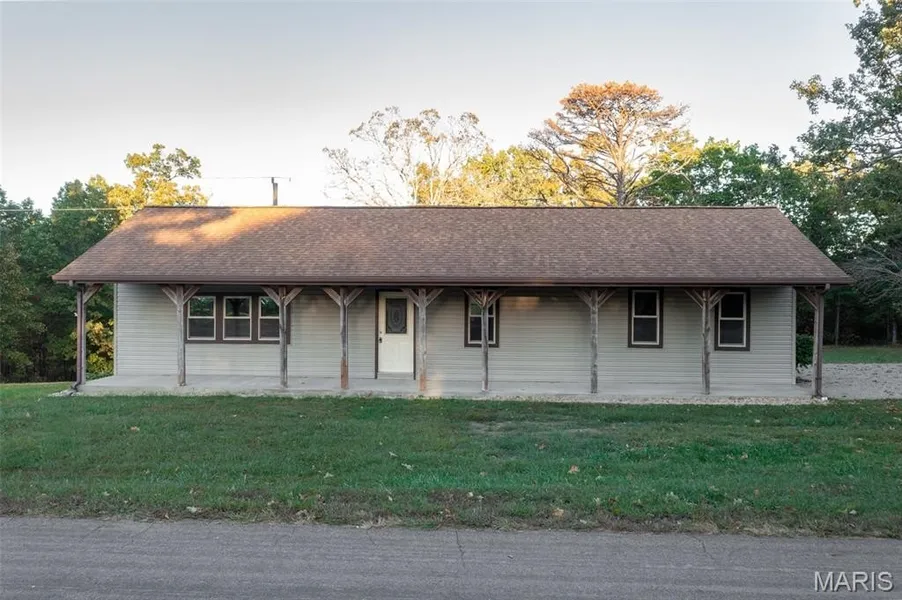 Own your piece of country living in this 2 bedroom, 1 bath ranch style home! Spanning 1,540 finished sqaure feet, this property offers plenty of space and comfort. As you enter, you'll be greeted by a large living room, perfect for family gatherings or cozy nights in. The kitchen and dining room features a breakfast bar and plenty of cabinets, catering to all of your needs. Enjoy the convenience of the spacious laundry room, which adds to the home's functional layout. The home features new flooring throughout majority of the home, as well as some fresh paint. Step outside onto the expansive back deck, where you can take in the views of your own 3 acres! Additionally, a covered front porch extends the entire length of the house, providing an inviting spot for your moring coffee or evening relaxation. With State Hwy frontage, this home offers easy accessibilty. Don't miss the opportunity to make this one yours!