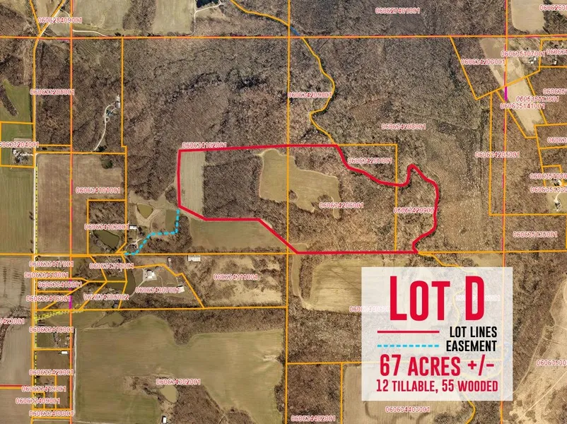 NEW PROPOSED BOUNDARY LINES. This 67+/- acre parcel is perfect for recreational use, hunting, farming and more. In addition to deer & turkey, the seller has also seen a bobcat, coyotes, & hunters have seen tracks that look like a small brown bear on the property. Enjoy the lush trees, including valuable black walnut (ready to be logged if you want extra cash). 12+ acres of tillable are currently leased and could continue to give you income. A shared easement allows access for work or play. This property, once surveyed, will contain part of tax parcel 06-06-34-209-001, most of parcel 06-06-34-206-001, and part of parcel 06-06-34-102-001. Seller will pay for survey and creation of new parcels before closing. (Easement will be completed within 1 year of closing, with temporary access given until easement work is done.) Seller has additional acreage for sale, including more tillable/pasture.