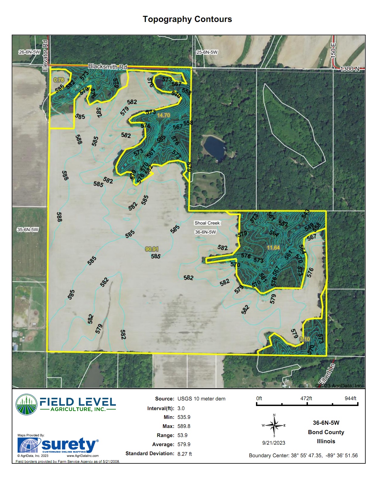 Field Level Agriculture, Inc. is proud to present the Cook Family Farm consisting of 120.0 +/- acres in Bond County. The property is being offered as one tract to the public via a live auction with online bidding available. All bidding will be on a per acre basis (real estate tax acre). The final settlement price will be based on the respective tract acreage multiplied by the accepted bid per acre times and adding a 4% buyers premium. Interested remote/internet bidders should visit our online bidding platform to register and bid on this prime Bond Illinois tillable farmland. The auctioneer and/or staff will be in contact with interested parties leading up to the scheduled end of the auction to ensure everyone is able to place bids as desired.