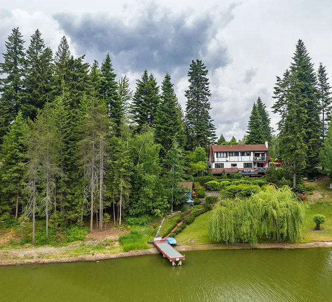 Looking for your dream home with great lake access, this waterfront English Style Tudor home will capture your heart. This thoughtfully designed inside and out 3600+ square foot home has been cared for meticulously and offers it all. Four bedroom (possible 5 bedroom) 3.5 bath, formal dining and living rooms, large den / library, breakfast nook, family room, entertaining bar, workout room, hobby room. The master suite offers its own private balcony with great water views. The wrap around deck allows you views from every sitting area. Gentle grass slop to waters edge and dock in protected Boyer Slough just moments from the open lake. Beautiful brick entry, and circular drive give the home a grand feeling. The wonderfully landscaped grounds have been featured on the Bonner County Garden Tour!