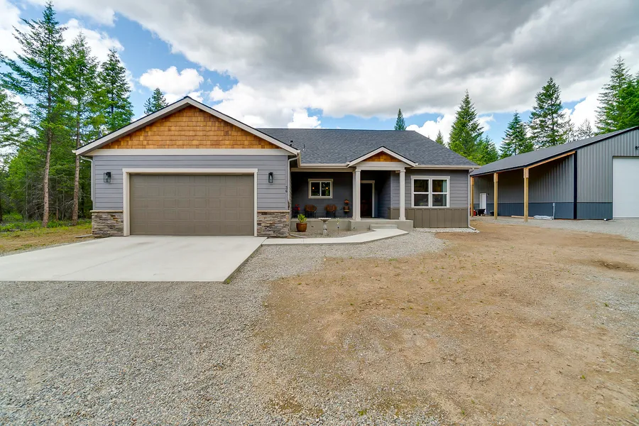 Stunning 5-acre north Idaho ranch home in Quail Ridge Estates, north of coveted Spirit Lake Idaho and less than one year fromconstruction! Privacy among the trees, quiet paved country roads sweeping through a thick forested community. State land right downthe street affords ample opportunity for hiking, horseback riding, quads, and mountain bike riding. Nearby Spirit Lake has great fishing,boating, swimming and outdoor recreation as well as great places to shop, eat, & enjoy a day or evening out. This gorgeous home hasa large open design with over sized bedrooms each with its own walk-in closet. The Master Suite is a true suite with big closets, largemaster bath & giant tiled shower! Custom artistically crafted counter tops and ornate tile backsplashes adorn the kitchen and baths