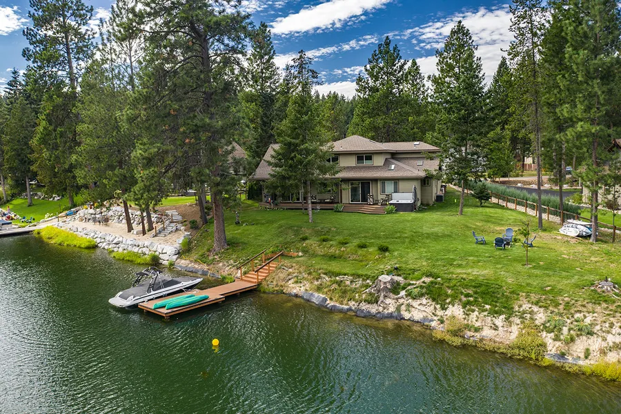 Wrap yourself in luxury in this absolutely stunning waterfront home, just two miles to Sandpoint. Masterfully built by Pacific Construction in 2016, this single-owner home boasts 3400 square feet with an open floor plan, beam ceilings, rock fireplaces and unique and distinctive finishes throughout. The kitchen is a chefs dream large island, granite counters, and top-of-the-line appliances. The main floor features a large en-suite bedroom overlooking the water with its own fireplace, dressing room and spa-like bath. Two other bedrooms, a library/office and an artists studio over the 3-car garage make this home perfect for year-round or vacation living. Efficient systems serve the home, including gas forced-air and central air conditioning. The garage is plumbed for a gas heater and the electric panel includes generator hookup. Inside spaces transition seamlessly to outdoor deck and enter...