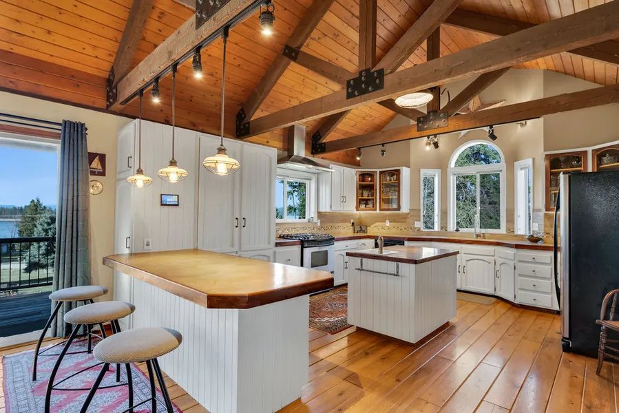 This home is the complete experience for the best of North Idaho living. The residence is perched above Lake Pend Oreille, featuring huge views of the Lake and the mountains beyond. Deeded Waterfront Access to the Lake just a few minute's walk and close to Hope marinas. The Hope peninsula is a special place with excellent boating and fishing, on a deep water bay. This delightful residence features landscaped lawns and a fenced garden area, with all-day sunny exposure. Two large deck areas allow for outdoor dining, and an outdoor fire-pit for those campfire stories to be told! Beautifully renovated with so many fine interior details these had to be included on a separate sheet attached to this listing. Large shop 35 x 40 with concrete floor, 220 electric, 16 feet clear, RV overhead door. Generac generator hooked into the panel. Local stone fireplace. County paved roads to Sandpoint maybe ...