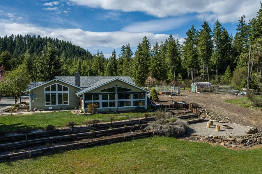Well built one-level home with extraordinary mountain and water views. Very private setting on 7.52 acres. (adjacent 7 acre lot available for $225K) Spacious living area with rock fireplace, vaulted ceilings. Inviting large sunroom takes in the incredible vistas. Two master suites of which one is ADA accessible. Paved driveway leads you to an attached 2 car garage includes small built-in sauna and a separate 25x50 3 Bay Shop. Fruit trees, fenced garden area, lawn, sprinkler system. New siding & gutters in 2017. New roof 2019. Great location, less than 5 minutes from Stoneridge golf course. Very light CCR's.