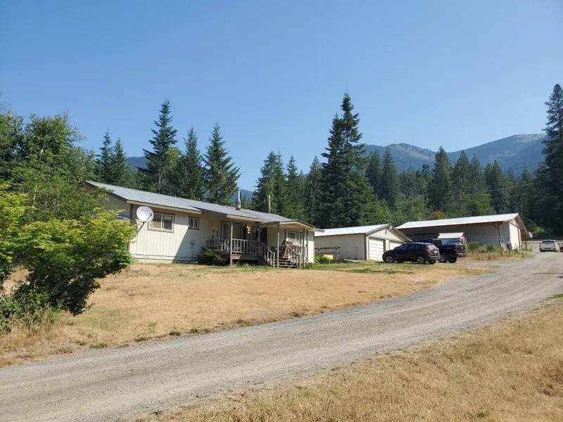 Spacious and well built 3 bedroom, 2 bath Rancher with detached 2 car garage. Great location on the outskirts of East Hope and situated privately on 3 south facing acres with easy access off county maintained Spring Creek Road. This property also includes a large commercial grade heated and insulated shop with office, attached leantos, pole buildings, and separate fenced yard area currently rented to an Excavation company.