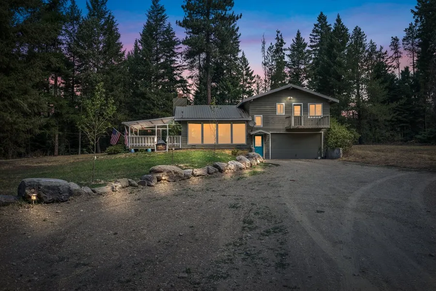 Surround yourself in the mountains yet live close to town in this beautiful 3 bedroom 2 bathroom home on over 5 acres. Private driveway with only a handful of homes at the end of road offers privacy and seclusion. Home boasts an open floor plan perfect for entertaining with a kitchen peninsula and eat-in dining area. T&G vaulted ceilings and vinyl flooring provides a rustic beauty. Upper level offers 3 bedrooms and a full bath; enjoy the view off the master bedroom balcony. Laundry facility, full bathroom and storage room on lower level along with a double car attached garage. Large shop has 220V power, 9K car hoist, waste oil heat, W&D & wash bay sink. Lean-to storage and garden shed for all your outdoor needs. BBQ on your covered deck and enjoy all the North Idaho lifestyle has to offer.