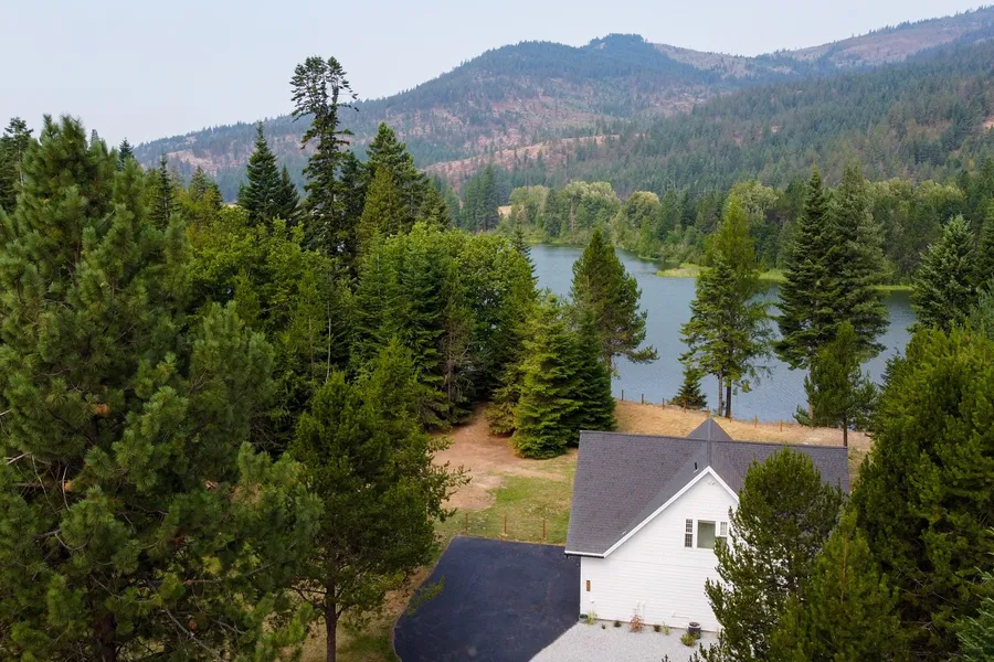 Waterfront Charmer in LaClede on 1+ Acre w/Brand New Dock! Approximately 1200 SF garage/shop space w/9' garage door to store your toys. 2 bed, 1 bath loft home above, completely remodeled in 2021 w/designer touches and tons of charm! Ample parking including RV parking space w/RV power, water & dump. Level, parked-out setting w/firepit area, beautiful shade & pine trees, partially fenced for children or pets. Plenty of room to expand or build an additional home. Riley Creek Recreation Area is right around the corner w/community beach park, boat launch, volleyball, horseshoes & trails. Private safe inlet great for kayaking & paddle boarding. Boat to nearby Willow Bay Marina or out to the Big Lake. Enjoy spectacular sunsets from your private balcony, patio or hot tub!