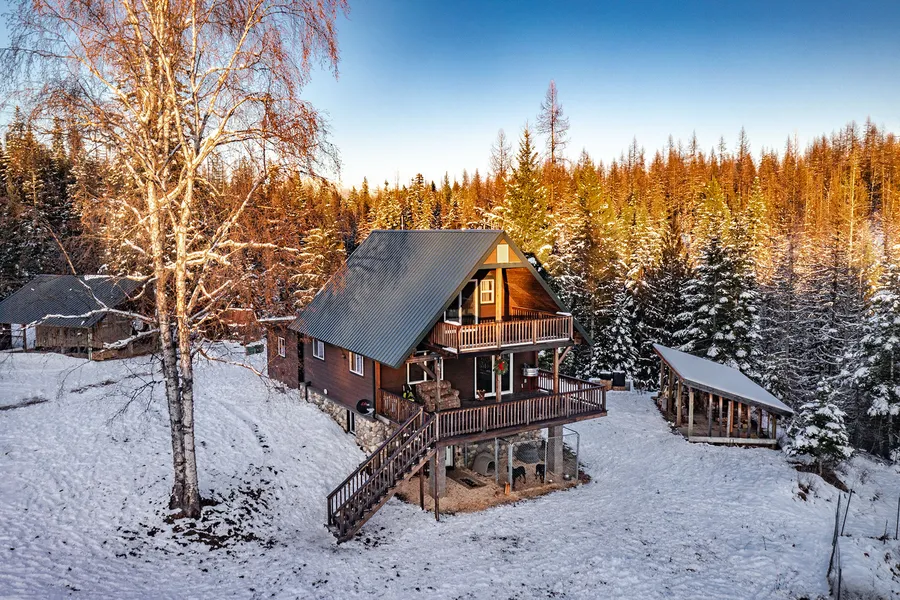 Experience self sustainable living from this extremely private off grid cabin on 20 acres w/southern exposure,year round creek,multiple ponds & orchard yet only 25 minutes to Sandpoint amenities!Custom cabin features 1800Sqft of living space,3bed/2ba,open concept in living,dining & kitchen w/SS appliances,2 covered decks w/Mtn views,daylight basement w/efficient KUMA wood burning stove & or supplement w/propane heat.Wood laminate flrs in main flr & master w/vaulted ceiling & 1/2 bath.Mostly level & wooded,this 20 acres can be split into two 10 acre parcels w/multiple building sites,orchard, pond & 2 acre perimeter are fully fenced w/prepped area for organic garden.Detached 20x30 pole building w/storage container,chicken coop/run,dog kennel,solar shed w/new Kubota generator & wood shed.Private well w/Baker high end hand pump,septic,4 propane tanks,no CCR's. 5 min. from the county road,10 ...