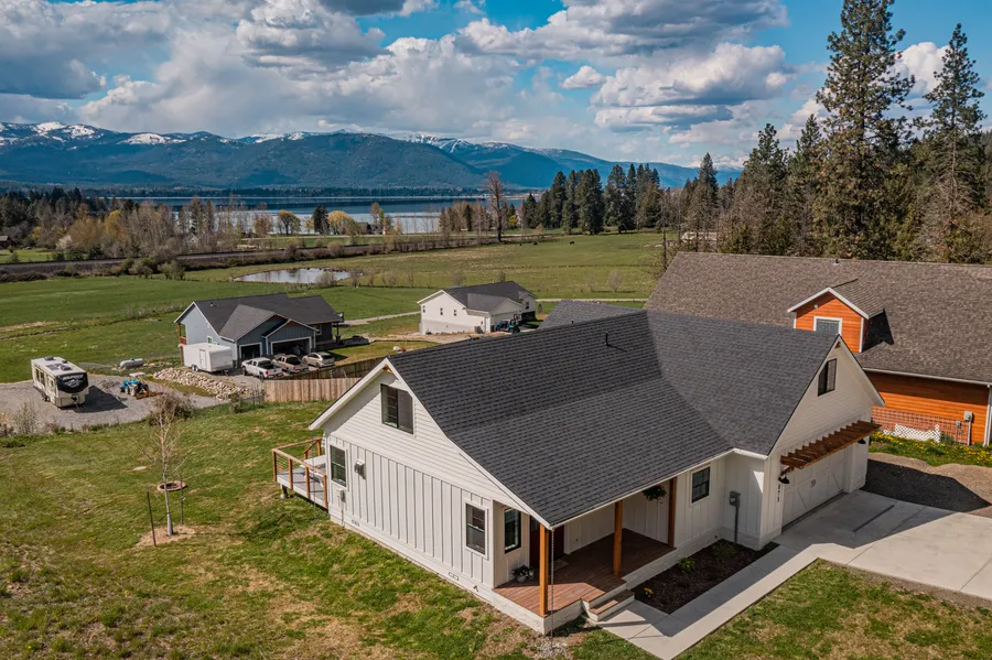 Stunning views of Lake Pend Oreille & Schweitzer mountain from this newly built Modern Farmhouse minutes from downtown Sandpoint.Custom built w/energy efficiency in mind, this 3bed/2.5ba home features in floor hydronic heat, open concept & lots of windows to bring in the natural light.The main floor living space includes shiplap & brick accents, living rm w/built ins & gas fireplace w/hearth.French doors in dining area open to a treks deck to take in the summer sunsets.Gourmet kitchen w/quartz countertops, SS appliances, butcher block island w/bar seating & pantry.Mud rm entrance w/laundry off 2 car attached garage w/heated driveway & sidewalk. Main floor master suite w/fireplace, en suite w/w-in closet, tile walk-in shower & soaking tub. Second floor bonus rm w/built in desk, 1/2 bath & two bedrms w/views & custom built ins. Situated on .37 acre lot near by bike paths, hiking trails & a...