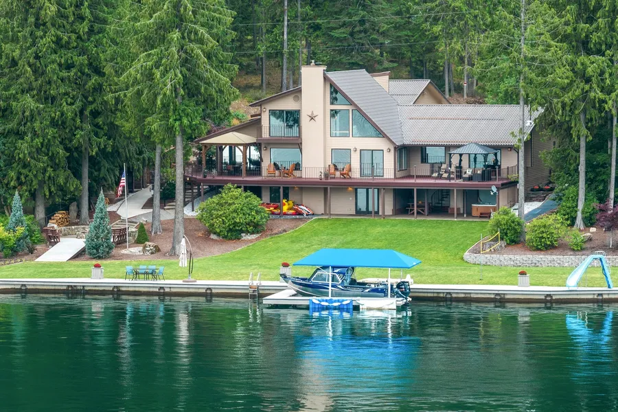 Enjoy life on the water in this spacious 4715 sf home located on.69 of an acre w/170 private feet on the Pend Oreille River. This outdoor oasis features a gentle lawn to the water& 170 feet of boardwalk decking along the seawall where you can swim, fish, lounge in the sun, dine, paddle board & boat from your private dock w/boat lift. Continue along to your stone fire-pit w/ample seating, hot tub, multiple outdoor dining areas, gorgeous established landscaping, built in sprinkler system, covered BBQ area & more. Walking into this spacious home, the spectacular water views welcome you & approx 3895 feet of decking expands your outdoor living even more. The great room w/central fireplace is warm & inviting, the family room w/wood stove & wine bar area are designed for comfort & entertaining. The fabulous large chef's kitchen features high end appliances, granite counters w/so much custom ca...