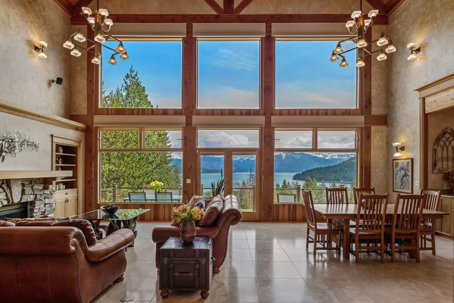 Lake Pend Oreille living at its finest! The beautiful wooded driveway reveals this pristine 4 bdrm 3.5 bath estate w/unobstructed Lake Pend Oreille & Mountain views. Stunning architectural design & custom finishes throughout-see Feature Sheet. Enjoy the private community waterfront w/designated boat slip, boat ramp, protected marina, beaches & sports court. Timber frame great room w/soaring 32' ceiling & impressive rock fireplace has wall of windows filling it w/natural sunlight & views from every level. After a day at the lake, gather in the elegant gourmet kitchen w/granite countertops & island w/seating. Kitchen features handcrafted walnut cabinetry, high-end appliances & coffered ceiling. Relax and enjoy the lower-level game room w/pool table. The sunroom has a full wall of sliders that open to a stone patio to enjoy indoor/outdoor living. Retire to the spa-like primary suite to rela...