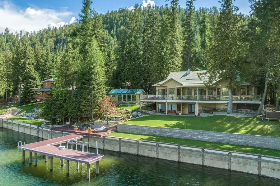 Life on the water is perfect: entertaining is easy, the views are divine, & swimming, boating, & fishing are only steps away. This fabulous retreat offers 161 feet of private waterfront along the Pend Oreille River, dotted with decks, patios, terraced living spaces, & a personal dock & boat lift. This spacious home offers 4198 sf of luxurious living space with water views from almost every room. An updated spacious kitchen with stunning granite, dining room with 180 degree views, wet bar, custom stone fireplace, & vaulted ceilings make this home perfect for entertaining, while the personal patios off each bedroom, & the main suite's private deck, ensure that everyone has their own special retreat. This stunning .81-acre parcel also features a gardener's dream greenhouse, which could easily function as a studio, bunk house, or guest suite. 1/8th ownership of 20 adjacent acres gives you ac...