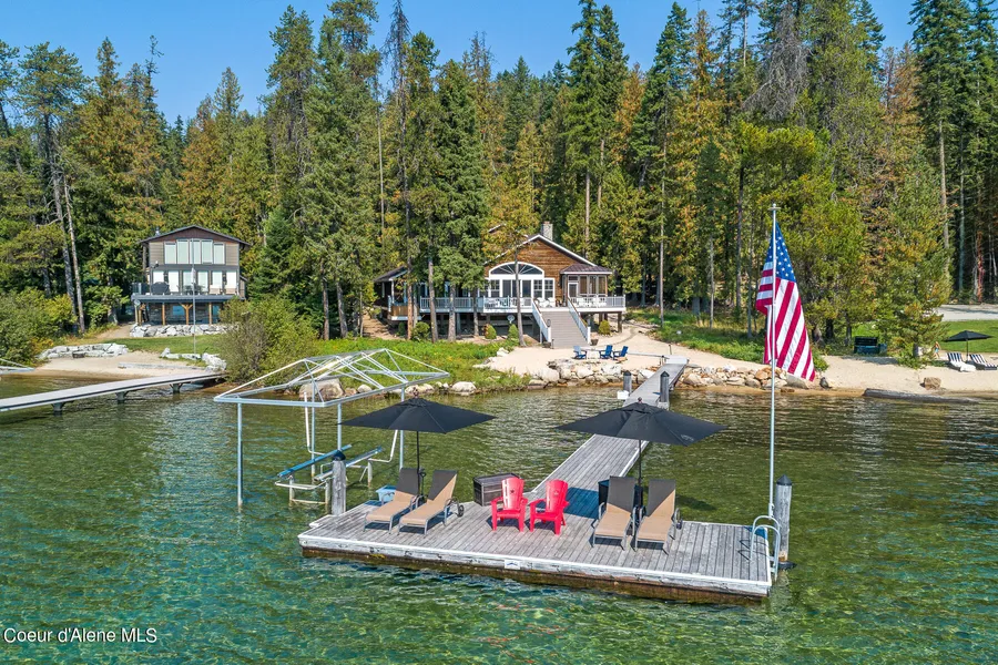 Discover your perfect lake retreat in this stunning waterfront home, offering breathtaking views of Priest Lake and a tranquil atmosphere. This luxuriously appointed home combines modern amenities with the relaxed charm of lakeside living, on a rare 5+ acre lot providing endless expansion potential. Virtually everything in this spacious Cape Cod style home has been updated for easy living and stylish comfort. A luxurious kitchen, high-end flooring, new roof, propane furnace and AC. 5 bedrooms and 3 baths easily accommodate all your family and friends. Office, sunroom, loft and more! Enjoy the warmth of a wood-burning fireplace appointed with soaring river rock. Soak up the serenity in your hot tub on a huge wraparound new Trex deck on 114' of beach. Private dock with boat and jet ski lifts. An extensive circular driveway leads to a 2-car attached garage for easy and ample parking. Community sewer system and private well. Buyer to verify all information Always be connected with high-speed satellite internet and automatic generator. Great quiet location, but close to resorts, restaurants, and golf. Absolutely everything you need to relax and enjoy lake life to the fullest!