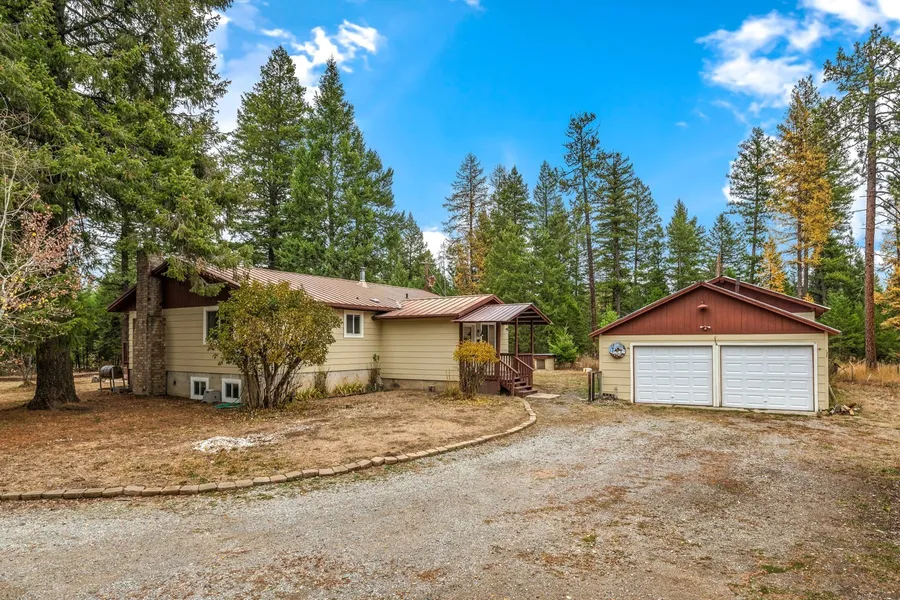 Discover this charming 4-bedroom, 3-bathroom home, perfectly positioned just 5 minutes from Oldtown and Priest River. The kitchen boats stainless steel appliances, abundant cabinetry, and a walk-in pantry. Relax by the cozy wood-burning fireplace in the open and inviting living room. Bedrooms are generous in size with closets and built in storage cabinets. The master en-suite includes a full bathroom with a tub-shower combo. The basement offers a bedroom, full bathroom, and a bonus non-conforming room; perfect for an office or hobby space. Situated on 5 flat, usable acres, this property features beautiful wooded areas with trails, perfect for exploring. The dbl gated entrance and partial fencing enhance the sense of privacy and seclusion. A heated two-car detached garage with 200V power, a storage bay off the back, outbuildings, and a 4-bay carport make this property both versatile and functional. Don't miss the opportunity to experience peaceful living in a beautiful natural setting.