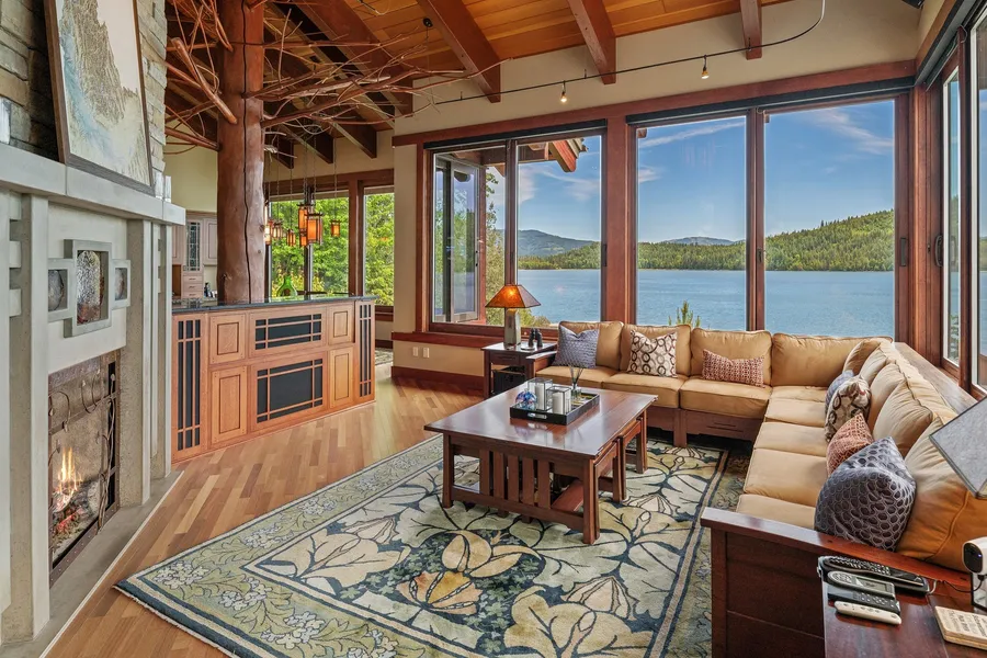 Experience unparalleled luxury living on the pristine shores of Pend Oreille River in Dover Bay, Idaho. This custom-built Jon Sayler design, meticulously crafted by Mountain View Construction over 2 years, rests upon natural granite, reminiscent of the iconic Gamble House in Pasadena designed by Architectural firm Greene and Greene. Boasting 200+ feet of waterfront, a private dock with covered slip, and lifts for both boat and watercraft, this home is a waterfront enthusiast's dream. The features of this home are many - please see the Feature Sheet for more details and information. Discover bespoke features like a custom-designed Movie Theater and Au Pair residence on site. Enjoy the convenience of Dover Bay's community amenities, including a membership fitness center, pool, hiking/biking trails, restaurant, variety store and more. This extraordinary North Idaho Estate waterfront home is...