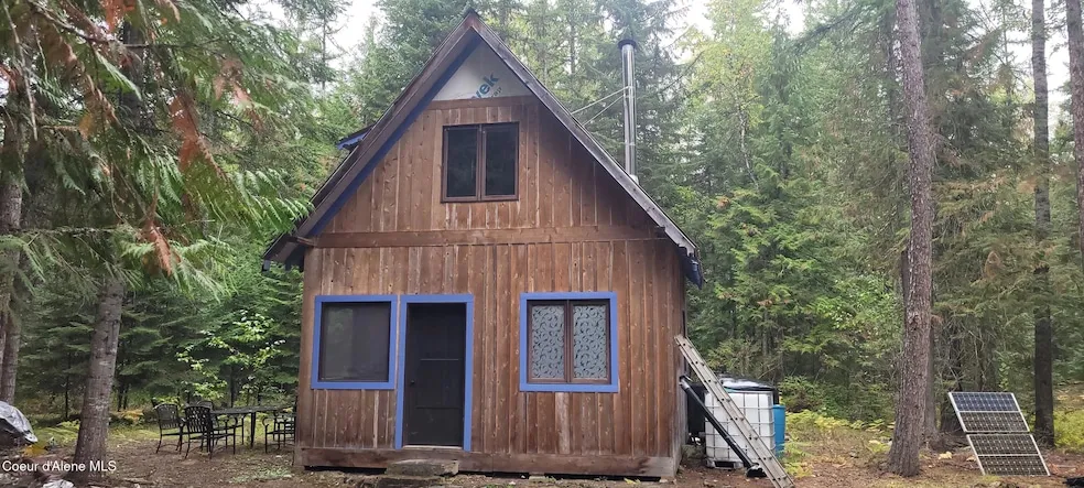 CABIN IN THE WOODS. Off-grid 960 sq ft cute little cabin in the woods. Located on 20 acres in the forest, with a fair amount of trees and underbrush. Cabin is setup for a generator, water holding tank, and hooked to solar. Beautiful wood floors, nice kitchen, spacious bedroom upstairs, a shower and a composting toilet. Would make a great recreational week-end property or live there seasonally. Plenty of wildlife as a recent heard of Elk was spotted (pictures). Includes batteries, invertor, and a small bank of solar panels for off-grid living. The road/driveway was recently work on by one of the owners, still remote and unimproved. Only 5.5 miles from town yet especially private
