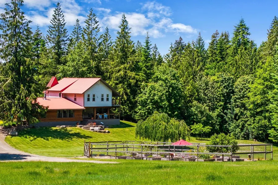 Welcome to this hidden gem where the gentle sound of the creek harmonizes with breathtaking mountain views. It provides an unparalleled escape into nature, in 4 minutes you are at the Lake and in 29 minutes you are at Schweitzer Mountain Ski resort. This delightful home, set on an expansive 10.14 acres, boasts an array of remarkable features. As you step inside, a large, covered deck invites you to host unforgettable gatherings. The main level showcases a stunning living area with vaulted ceilings and a warm fireplace, creating the perfect ambiance. A chef's kitchen awaits, offering abundant counter space and cabinets, while the delightful dining area, encased in windows within the turret, brings the beauty of the outdoors inside. You'll also find a spacious bedroom complete with a private deck, along with a beautifully appointed full custom bath. Venture upstairs to discover the breathtaking primary bedroom, featuring an impressive walk-in closet and a private deck. The custom-designed full bath is a true masterpiece, featuring soapstone, glass, and a luxurious clawfoot tub. The turret also houses a versatile room that can serve as an office or additional bedroom, plus another roomy bedroom awaits. The walkout basement offers a self-contained guest suite, complete with kitchen and bath. A large detached two-car garage includes a guest apartment above, perfect for visitors or rental. This remarkable property also features two impressive shops, a generously sized fenced garden, a stage or camping platform in the field, a serene creek, lush pasture land, and forested areas with majestic treesall ensuring maximum privacy in this enchanting oasis. Don't miss out on this extraordinary opportunity!
