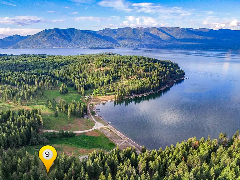 Be a part of this new PRIVATE WATERFRONT COMMUNITY of Camp Bay that enjoys southern exposure and unmatched, gently sloped parcels in Camp Bay Idaho. Lot 9 is a 4.16 acre parcel with a community boat dock slip on Lake Pend Oreille with paved roads, trails and open space throughout the community connecting to adjacent public lands, as well as high speed fiber optic internet, and a community lakefront recreational area. Minimum 5 GPM well included. Just 30 minutes from downtown Sandpoint the home of Schweitzer Mountain Ski Resort! Don’t miss the opportunity to own acreage on famed Lake Pend Oreille. The conceptual master plan is for illustrative purposes only.