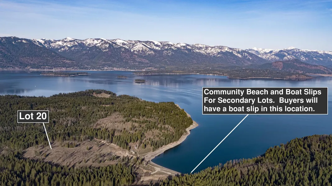 Don't miss the opportunity to live in one of the finest new communities in North Idaho. This lot is perfectly situated in the bay on the third bench of a 3 tier Amphitheater style property with incredible Lake Pend Oreille and Monarch Mountain views. But don't just look at the property, enjoy it with your private boat slip that comes with the ownership of this lot. Other amenities include a community beach and gazebo area. Need more? The communities open space allows for long walks and beautiful views in all directions. If you haven't seen Camp Bay, you really haven't seen how good North Idaho living can be. Property has power to the driveway and a 25 GPM well and is ready to build on - just bring the plans for your dream home.