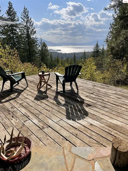 Nature Calling! Google Earth or a fold-up map can guide you to the hills of Hope, Idaho – a lakeside town of tall trees and high skies; where eagles and osprey call home, and migrant geese fly in formation. This is Riser Creek Retreat: A private forest of seven-plus acres of valuable land lending elevated, breath-taking views of fames Lake Pend Oreille, with the Monarch Mountain Range there in the background. An enchanting setting amongst old growth cedar and pine wood trees, with multiple benches to build your dream home. Following a nice hike thru the woods you’ll find Riser Creek. This property has provenance. First published by the New York Times, then Metropolitan Home as a creative architectural home office nestled in the woods, here stands a well-designed hexagon shaped shelter with a cedar shake roof supported by peeled timber posts. Wrap-around canvas walls with zip down door and windows open up to an extensive deck that cantilevers out over the hillside. The lake view is inspiring, if not magical. This unique setting once served as a personal retreat for a noted Hollywood Producer / Director; a cozy hideaway where she could rest, relax…, and while at ease, to read and study scripts slated for the Big Screen.